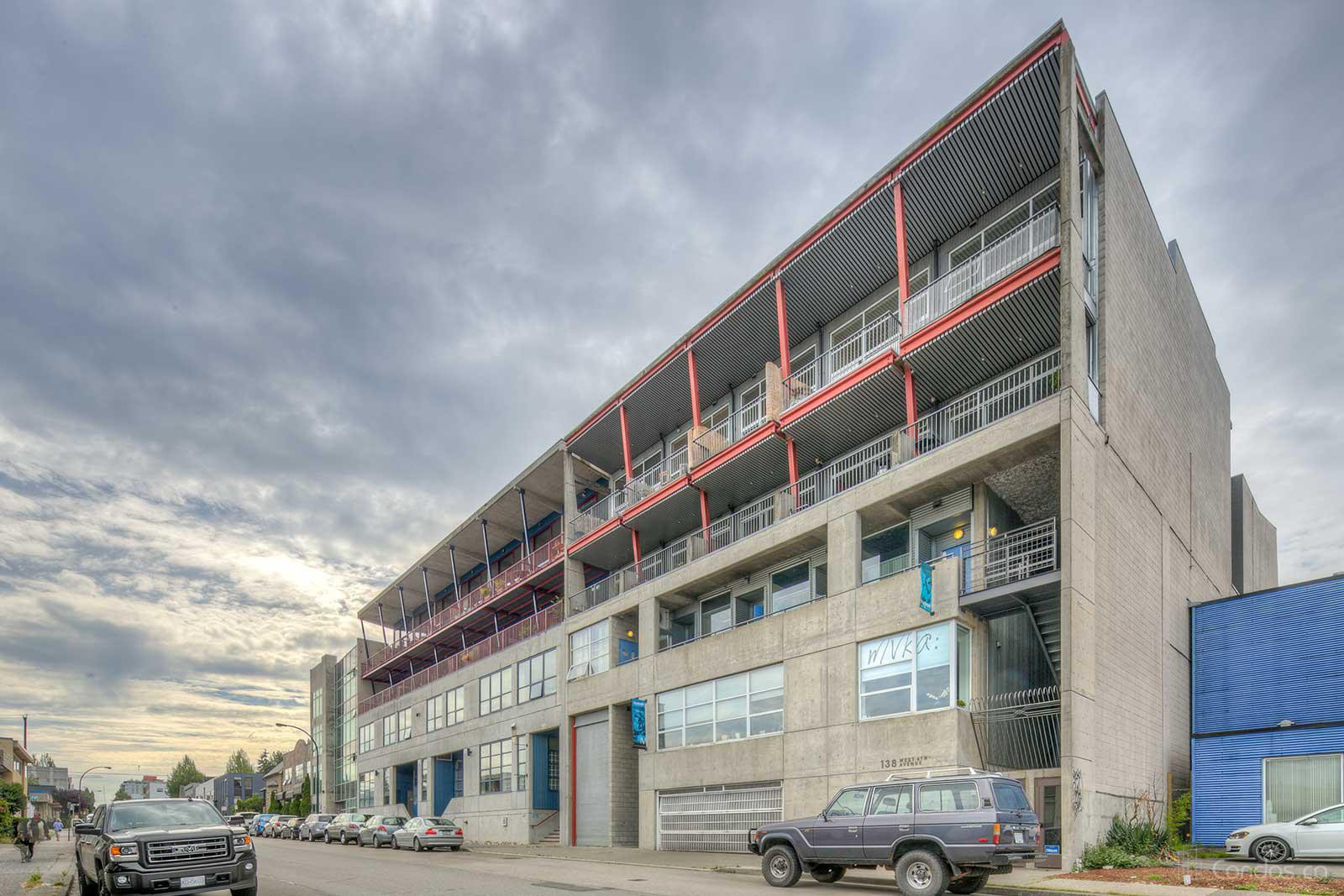 This boutique 10-unit concrete loft building was constructed in 1996 in the buzzy neighbourhood of Mount Pleasant. These homes are double-height, with parking and spacious patios. Plus, these unique homes are right in the heart of a very cool tech hub!